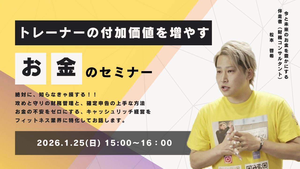 【フィットネス業界限定】知らないと損する!トレーナーの付加価値を高めるお金のセミナー 独立しても安心してトレーナーを続けたい人へ トレーナーの離職理由で最も多いのが「お金の不安」。 これは才能でも努力でもな … 続きを読む
